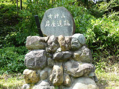 ドライブイン手前に立つ電光掲示板の分岐を右折し、女亀山の登山口へ向かう。赤名川に架かる中橋を渡り、突き当たりのT字路を左折し、南に向かって道なりに進む。集落を過ぎ、右手に女亀山岩座遺跡の石碑を過ごすと、正面に最後の民家を見る。