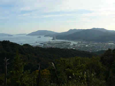 この先右手に隠田跡を過ごし、坂を登れば横木の渡された展望地に着く。ここからは眼下に柳井市街と柳井湾の展望が開けており、小休止を取るには最適の場所である。この先シダの茂る場所を過ごし、少しずつ高度を上げると、左手に山火事で岩肌の目立つ場所が見えてくる。
