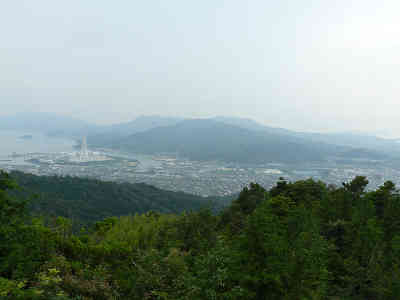 参道途中には金比羅大権現の石碑も立ち、更に登ればベンチの置かれた展望地に到着、眼下に広がる柳井の市街を眺める。八十八ヶ所巡りも、三ヶ岳登山の場合は第32番禅師峰寺で終了、この先から坂道を下りて行く。