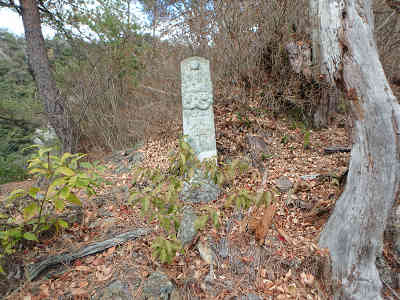 岩の上に日差しが戻り、少し登れば汗ばむ陽気。お正月だがすぐに半袖となる。急な岩の道を折り返せば一丁のお地蔵様と丁塚を見る。これから山頂まで、参道に置かれた20丁を黙々と登る。今日の目的は丁塚を一つ一つ数えながら見落とすことなく登る事である。