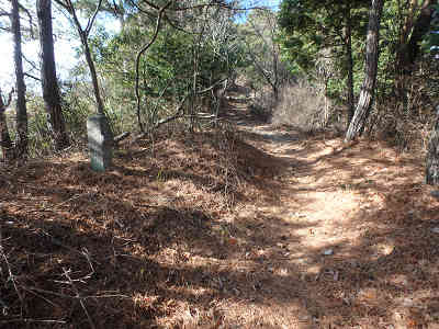 少し真っ直ぐな道に戻れば左に八丁、岩の道を辿り左に九丁を見送れば、まもなく右の隠れたところに立像の十丁を見つける。更に坂を進むと広場の手前に十一丁、石組みの上にはかつてお休み処が建っていたが、台風により倒壊してしまったようだ。