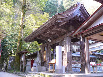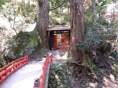 六根とは人間の感覚器官である眼・耳・鼻・舌・身(身体)・意(心)を指し、六根清浄とは霊山に登ることにより、俗世間の汚れを落とし、心身共に清浄になると言う意味らしい。入山受付所を出て少し下ると朱の扉の門を潜る。いよいよ修験者の道に入るのだと思うとワクワクしてくる。