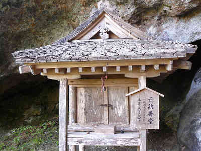 納経堂の先には正保5年(1648年)鳥取藩主池田光仲により再建された観音堂が自然の岩の下に建っている。観音堂の右手後ろを通って進んで行くと、その先には元結掛堂が立ち、少し進んで振り返ると観音堂が岩の中に入っている。これはとても素晴らしい光景である。