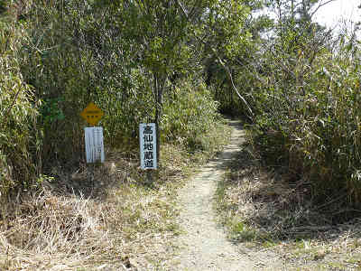 少年自然の家へ向かうと「高仙参道」の案内を見つけた。いったいこれは何の標識かと思ったが、高仙さんは山頂付近に建つ地蔵堂の事である。従って、この高仙参道の案内に従い登れば、室神山の山頂へ着く。
