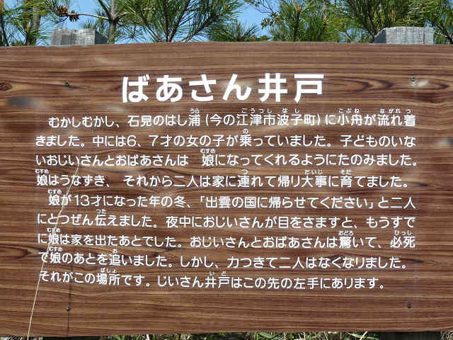 2010年4月04日 島根県立少年自然の家 →0:15→ ばあさん井戸 →0:10→ 山頂 →0:20→ 島根県立少年自然の家 全歩行時間 45分 江津市の本明山の登山を終了、本明大橋を出発、県道50号を北へ進むと間もなく有福温泉郷を通過、この先のT字路を右折し江津市街13kmの案内に従い県道300号を進む。そのまま道なりに国道9号に出ると、この場所は山陰道江津インターの入口である。