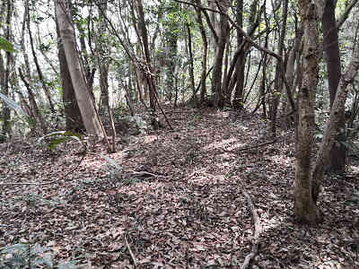 やがて県道140号獺越下松線に合流するので右折し、新幹線と山陽自動車道の高架下を通過すれば右に呼坂農免への分岐に出会う。ここから呼坂農免に入り500m進むと右に切山墓地の案内が現れるので左の路肩へ駐車し出発する。なお、墓地まで車で進めば登山時間を短縮することができる。