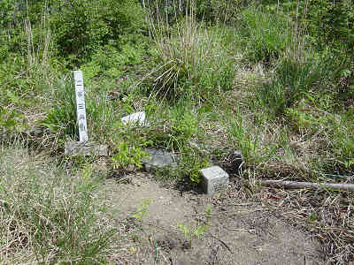大将山全景 生雲トンネルを抜けるとそれまで北西方向に走っていた道がほとんど真北に向かって登ることになる。すぐに右側前方に大将山が現れ、赤松バス停を過ぎて右折し、赤釜公会堂を見つけた。近くに土地の人がいたので、大将山に登るために林道を車で走れるかを聞いてみるとこの車なら大丈夫、かなり奥まで行けるとのことだった。早速林道に向かい、緩やかな坂を車で登って行くが、道が小石混じりの未舗装林道に入ったので、最後の民家付近の広場に駐車して大将山を目指して出発することにした。