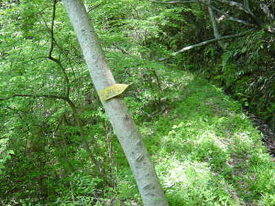 登山開始から林道を歩くこと丁度20分、準備運動としては十分な距離を歩いている。直接尾根に向かおうといきなりの急斜面をよじ登ってゆく。確かな踏み跡があり、目印のテープこそないものの迷うことはない。道は適度なジグザグな折り返し道で、周囲の木を掴みながら高度を上げて行く。