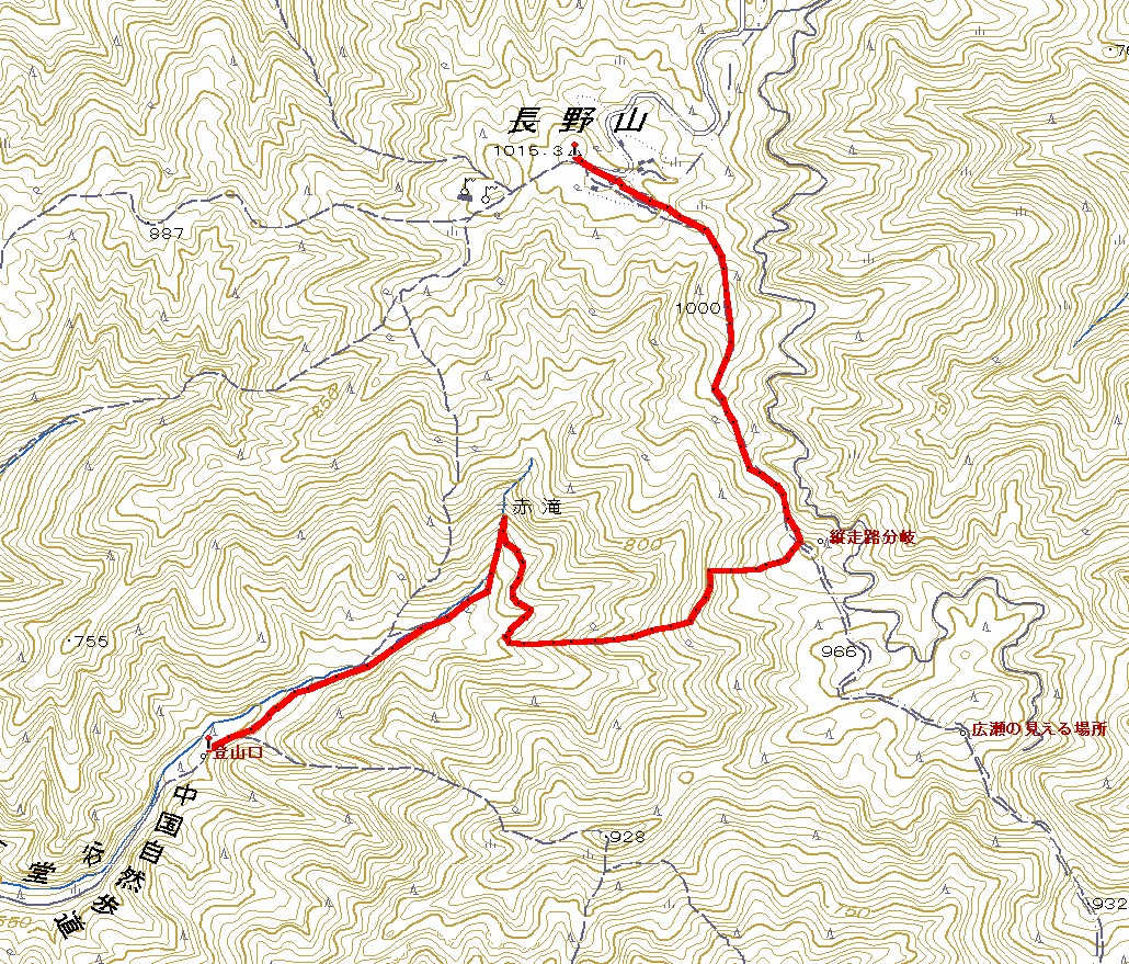 2002年9月29日(日曜日) 初回長野山五万堂渓谷コースを見る 2011年8月28日 登山口 →0:20→ 赤滝分岐 →0:25→ ベンチの休憩所 →0:25→ 縦走路分岐 →0:35→ 山頂 →0:30→ 縦走路分岐 →0:20→ ベンチの休憩所 →0:20→ 赤滝分岐 →0:15→ 登山口 全歩行時間 3時間10分 山口県周南市の長野山へ向かう。周南市の市街から三田川交差点を通り、国道315号を北上、須々万を通過しやがて鹿野へ着く。この先は長野山総合公園の案内に従い分岐を右折、そのまま案内に従い県道12号を北上する。