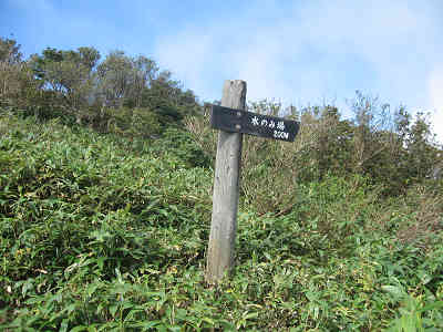 2006年9月23日 那岐山 参考コースタイム 登山口(第三駐車場)→0:25→那岐山国有林入口→0:10→水場→0:30→大神岩 →0:20→8合目標識→0:20→那岐山三角点→ 0:10→那岐山山頂(1,255m)→0:10→那岐山三角点 全歩行時間 2時間05分