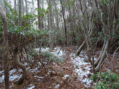 ピークからは周囲に展望は無く、ただ山道の途中という感じである。山頂標識も展望も無いので下山を開始。下山は元来た道を忠実に引き返した。