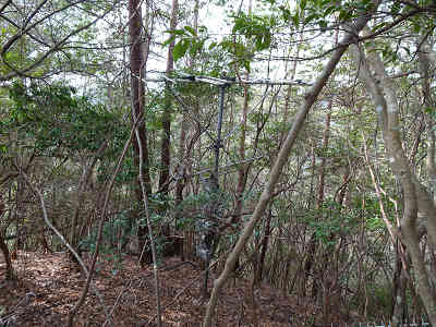 やがて平坦な尾根へ着き少し安心していたらシダの茂る急登が現れた。この急登を登り切れば再び緩やかな傾斜の道となり、登山道の左側に共同アンテナが現れた。