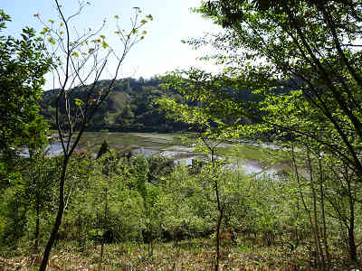 何も心配のいらない鋪装道を進むと、途中の左に展望地があり、鹿野烏帽子岳の下に二度と行きたくないライオン岩(岩屋山)のような岩が見えた。ライオン岩の鼻の所に祀られている石仏参りは私の登山史上一番危険な場所だった。