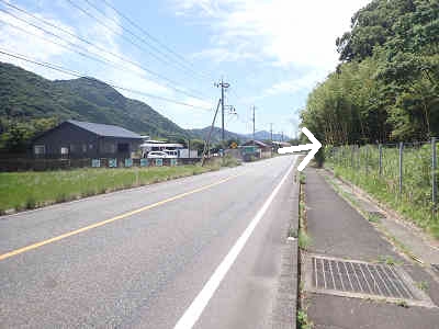 更に下っていると前方にワイヤーメッシュの獣除けが続いており、左下へ向かって下る。やがて無事にフェンスを開けて出たところは「祈る交通安全」のブロック塀の見える民家前。この場所から国道191号を登山口まで引き返す。