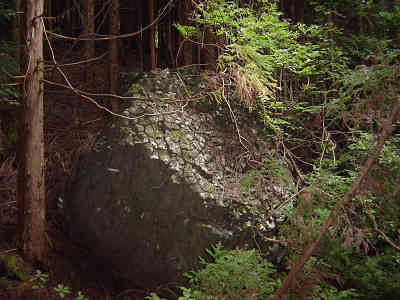 大岩を鑑賞しながら進む 大岩の一つ一つを楽しみながら鑑賞して歩いているとブナ林を見てから10分で鬼ヶ城山山頂に到着した。登山開始からは約50分の行程だった。