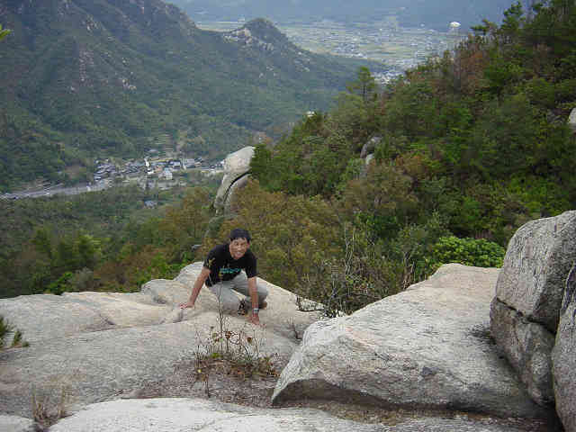 第四ピークへは滑る道を慎重に進みまっすぐに壁と立ち向かうこととなった。三点確保により進むが第四ピークへの登りもきつく、下を見ると落ちてしまいそうな急な岩の壁となっている。ロープもなく、少しでも滑ると真っ逆さまに落下してしまう危険な道を選んでしまったため、とにかく上だけを向き確実に足場を確保、手はしっかりと岩をつかんで離さないことに気をつけて進む。