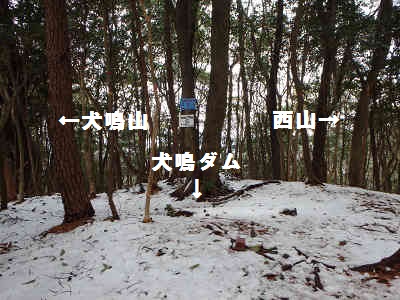 トップに戻る 2014年に登った山リストへ戻る 山名アイウエオ順 2014年12月23日 犬鳴御殿分岐 →0:10→ 左折分岐 →0:30→ 鉄塔下 →0:25→ こもの峠 →0:20→ 山頂 →0:15→ こもの峠 →0:25→ 鉄塔下 →0:25→ 犬鳴御殿分岐 全歩行時間 2時間30分 福岡県の山も残すところ4山、今回は最初に古賀市と宮若市の境界にそびえる西山へ向かう。宮若市の中心部から県道21号を南西方向へ進んで犬鳴ダムを目指し、犬鳴ダムに架かる犬鳴大橋を渡って「みやわか 観光案内 情報センター」の案内を確認して分岐を右折する。