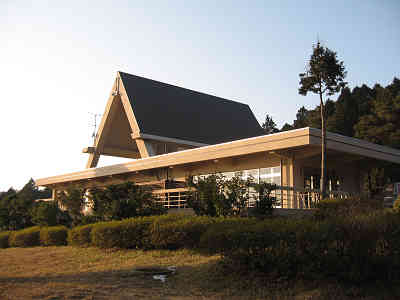 山頂にて記念写真を撮った後、先程来た道を引き返す。帰る途中から南側に道が続いていることが判ったので南方面に向かって進み、木の階段道を下りて行くことにした。周囲はキャンプ施設が整備されており、調理場や体験用の五右衛門風呂まで設置されていた。更に「セントラルロッジ」の前を通り、そのまま舗装道を西方向に向かうと、「氷池」が見えてきた。 氷池は文字通り本当に凍っており、瀬戸内海に近い場所でも標高800m付近では池も凍ることを目の当たりにして本当に驚いてしまった。氷池を左に見ながら木道を進んで行くと「国民宿舎野呂高原ロッジ」に到着、ロッジ前の野呂山の説明板を見るのだが野呂山最高点の「膳棚山」への行程がよくわからない。