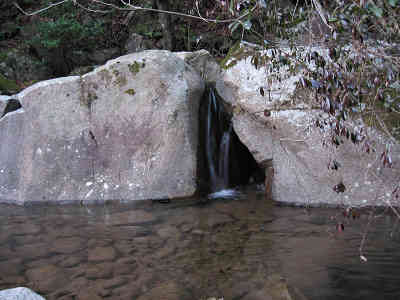 どんどんコースは急な斜面の連続で、下山はまさしくどんどん下山コースだ。岩の上で転倒しないように慎重に下りて行く。岩の道をハイペースで下りて行くので気分的には快適だ。間もなく沢に下り立ち、この先沢に沿って下りて行くことになる。沢の中も岩海のような状況になっており、とても嬉しくなる。