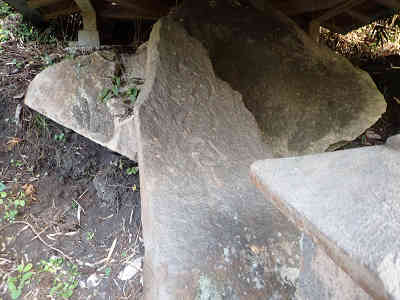 願成就温泉から国道9号を山口方面へ約800m進むと、右へ分岐する道があるので左折、入口には「徳佐歴史散策ルート」の案内が立っているので目印となる。西へ続く道を進んでいると、圃場整備の際に藪の中で見つかったという「三原の不動板碑」を右に過ごす。