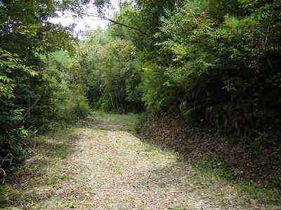 早速車を付近の空き地に駐車して登山を開始する。この林道は未舗装なので車で行くのはちょっとなあ・・・と思いながら進むとちゃんと車のタイヤの跡を見つけた。しかしながら乗用車での乗り入れは困難と思われる。 林道は広く何の心配もなく進むことができる。途中の左カーブの所の右側に5m入った場所には縁結びの神様が鎮座していらっしゃるが、ここには帰りにゆっくり寄ることにして先に進む。