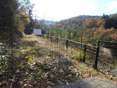 登山口の砂防公園駐車場へ着くと、広場でバーベキューパーティーをしていた人達が帰る所だった。すぐに大狩山へ向かって出発、砂防堰堤の左側へ向かうと、獣除けのワイヤーメッシュの柵がある。入口を開けて入り、しっかりとカギを締めて進む。