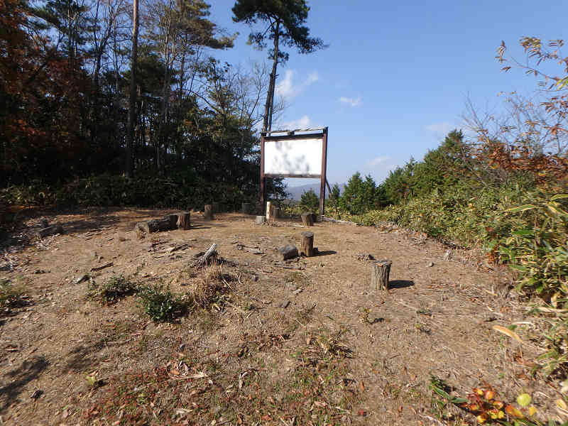2等三角点の置かれた山頂からは、南西に展望が開けており、美土里町の松尾城跡付近が見えている。ガイドには遠くに白木山も見えるとあるが、霞んでいるのでよく解らない。明るい山頂で小休止の後、三瓶山が見えるという展望台へ向かって時計回りに周回を開始した。