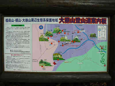 2008年7月18日 登山口 →0:50→ 大崩山荘 →1:30→ 避難岩屋 →1:30→ 袖ダキ →0:40→ 下湧塚 →0:20→ 中湧塚 →0:40→ 上湧塚 →4:10→ 登山口 全歩行時間 9時間40分 予てからの計画通り大星さんと九州の山へ向かう。午後6時に柳井を出発、熊毛インターから高速道路に乗り、小倉東インターで高速道路を下りる。そのまま国道10号線を南下、北九州市・行橋市・豊前市を過ぎて大分県に入り、中津市・宇佐市・豊後高田市を通って別府市に着き、別府湾の近くで遅い夕食を摂る。 夕食後別府市を過ぎ、大分市を通って大野川沿いを進む。豊後大野市に入り久原交差点で国道10号と別れ国道326号を走る。三重地区を過ぎ、日向街道を更に進むと三国トンネルを抜け、道の駅宇目を過ぎる。長い奥の原トンネルを抜けると宮崎県延岡市北川町、上赤渓谷を左に過ごしながら進むと、右手に大崩山への標識を見たので右折、下赤祝子川林道を進む。 この林道は曲がりくねった道であり、しかも途中には鹿・タヌキ・兎が走り回ってとても危ない林道。ゆっくりと時間を掛けて着いたところは上祝子地区、ここには美人の湯で有名な「祝子川(ほうりがわ)温泉」がある。そのまま大崩山の登山口に向かい、午前2時前に登山口へ到着、この場所にて前泊する。山口県からは7時間以上の時間を要した。 平成20年7月19日 昨日遅く寝たにも拘わらず午前5時に起床、大星さんの奥さん手作りのパンをいただく。これがとても美味しい。朝食後すぐに九州最後の秘境と言われる大崩山に向かう。登山口の手前には登山道案内と各登山コースの所要時間の概要が記載してある。「登山者の皆さんへ」と書かれた注意事項に気になる項目があった。 大崩山は、険しく複雑な地形の山なので初心者だけの登山には向きません。 大崩山は、長時間の難コースが多いので日帰りでも十分な装備(照明具や雨具、非常食等)を持参しましょう。 大崩山は、降雨による短時間増水があるので、天候に注意しましょう。 但し、これは後になって「なるほど」と思ったことで、実際には案内板を眺めただけで、午前6時10分大崩山登山口に入る。