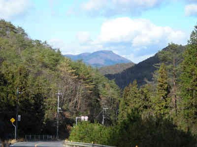 2006年12月3日 大野権現山 参考コースタイム 駐車場 →0:05→ 自然観察センター →0:05→ 自然観察の森分岐 →0:10→ おむすび岩へ1km標識 →0:25→ おむすび岩 →0:15→ 地積図根三角点 →0:10→ 大野権現山0.8km標識 →0:25→ 大野権現山 →0:20→ ベニマンサク湖へ1.1km標識 →0:20→ 東屋 →0:10→ 自然観察センター →0:05→駐車場 全歩行時間 2時間30分 河平連山の駐車場を出発、次の目標の大野権現山に向かう。県道41号を北に向かい、坂を下っていると正面に美しい山頂が見えた。すぐに路肩に車を停めて眺めると、この山は大峯山であることが判った。本当に美しい山容だ。更に坂を下ると渡ノ瀬貯水池に着くので、三叉路を右折する。次の三叉路を直進すると「大野自然観察の森」の標識のある三叉路に着くので、標識に従って左折する。しばらく細い舗装道を進んでいると間もなく大野自然観察の森入口の帆柱峠に着く。