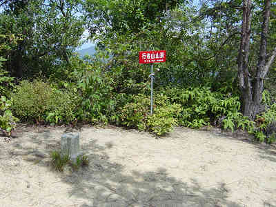 石鎚神社から45分で頂上社に到着、その先には行者山山頂の標識が立っていた。山頂からの展望は最高で、近くの経小屋山、傘山、周防大島等が広く展望できた。空気が澄んでおり、遠くまで見渡せるので気持ちが良い。山頂でしばらく休憩した後下山を開始する。