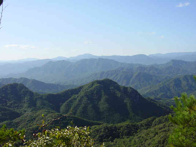西峰からは歩いて来た方向に展望の岩が広がっており、中国山地の山々を見ることができる素晴らしい場所である。三倉岳・大野権現山等の展望が開け、遠くにはレーダードームを従えた羅漢山まで確認することができた。山頂で素晴らしい景色を楽しんだ後下山を開始した。