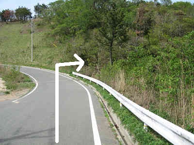 縦走路を更に進むと高い無線アンテナの立つ広場に着く。この広場を北に向かって舗装路を進み、2本目の電柱の所から右折し縦走路に入る。