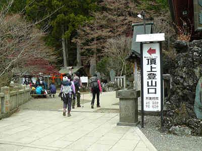 ここで「頂上本社御参拝の皆様へ」との案内があり、入山する人はお祓いをして道中安全のお守りを頂くことができるとのこと。初穂料として100円を支払い、安全祈願の後、道中安全のお守りを頂いた。