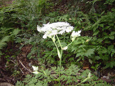 水場から山頂までは残り400m、少し進めば美しい花が咲いており、ゆっくり観賞する。木の根の張りだした坂道を更に進めば避難小屋に着き、避難小屋の先は待望の大万木山の山頂だ。山頂はやはり広く、山頂に立つ特徴的な木を思い出した。