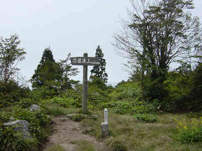 少し藪加減の道を歩いて行くと夏焼峠との合流点に到着した。ここまで45分の行程である。合流点から左に向かい少し歩くと1,346mの恐羅漢山頂に到着した。山頂には特徴的な枯れた高い木がそのまま立っており、岩を積み上げたような所もある。