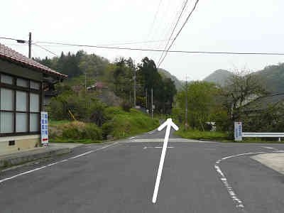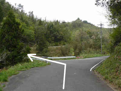 福寿水を出発、朝原川に沿いに寺領地区へ向かって南東方面へ進む。途中で県道は右へ分岐するが、かまわず直進する。やがて寺領峠を越え、寺領三叉路のバス停を左折する。この先の分岐を左折し、右に1軒民家が見えてくれば、左に王院山の案内の立つ分岐が現れる。