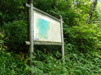 登山口 →0:20→ 王院山山頂 →0:08→ 展望地 →0:08→ 王院山山頂 →0:14→ 登山口 全歩行時間 0時間50分 王院山への登山口等の詳細は、平成23年5月3日の第一回の登山記を参考にして頂きたい。 前回は5月3日、黄砂煙る山頂の王院山から眺めた展望はとても残念だった。今回は、山口県の山(山と渓谷社)の著者、中島先生のご案内により、梅雨の晴れ間に再び出雲市佐田町へ向かった。広島県の三次インターから国道54号を北上、道の駅「掛合の里」の1km程度先の分岐を左折、県道39号を西へ向かう。