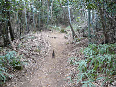 登山道に入ると周囲は竹林帯で、竹の緑が美しい。足下を見れば、綺麗に掃き清められている。何もしなければ竹の落ち葉が堆積する場所なのに、なんと整備された登山道だろう。これには最初から感激した。