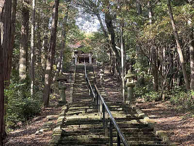 そのまま明確な道を下り、左に堰堤を過ごせば鋪装道を横切る。この入口には蓮華山登山道の案内が立ち、この横には「東尾根爽快懸崖ルート」の案内が置かれていた。次回はこのルートも楽しみである。さて、交差点を直進し、明確な道を進むと頭上が開ける。更に進んだところで振り返れば蓮華山の山頂部が現れた。蓮華山からの展望は素晴らしく、また登ってみたいと思わせる名山である。すぐに鋪装道に入り、蓮華山の案内を確認し、登山口の比叡神社まで帰り着いた。最後に長い階段を登り比叡神社に参拝、登山の無事に感謝し坂を下った。