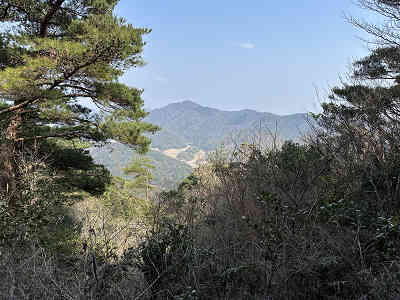 つづら折れの登山道を折り返しながら高度を上げれば、わずかに展望の広がる場所に着きます。霞がちの展望ながら、瀬戸内海を見晴らす場所で小休止し、展望に元気をもらって更に高度を上げます。
