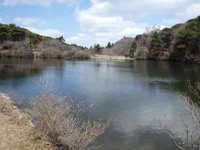 案内に従い、キャンプ場方面へ向かって坂を下ると、右に中の池、左にじゅんさい池が見えてきた。その池の中央につけられた遊歩道上には登山口に停まっていたバスで来た15名の登山者が昼食を摂っていた。私も最初は作礼山山頂で、のんびり昼食を摂る予定だったが、大変な事態が起きているため下山を急いでいる。