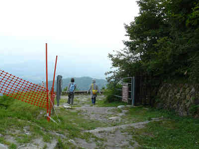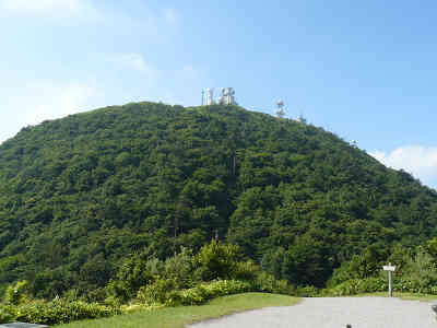 当然東に見えるはずの大山も見えないが、南東方面に見えるスキー場上にそびえているのは琴引山と思われる。丁度昼になったのでおむすびを2個食べる。これだけ暑いと水分は貴重なのでカップヌードルはお預けとする。