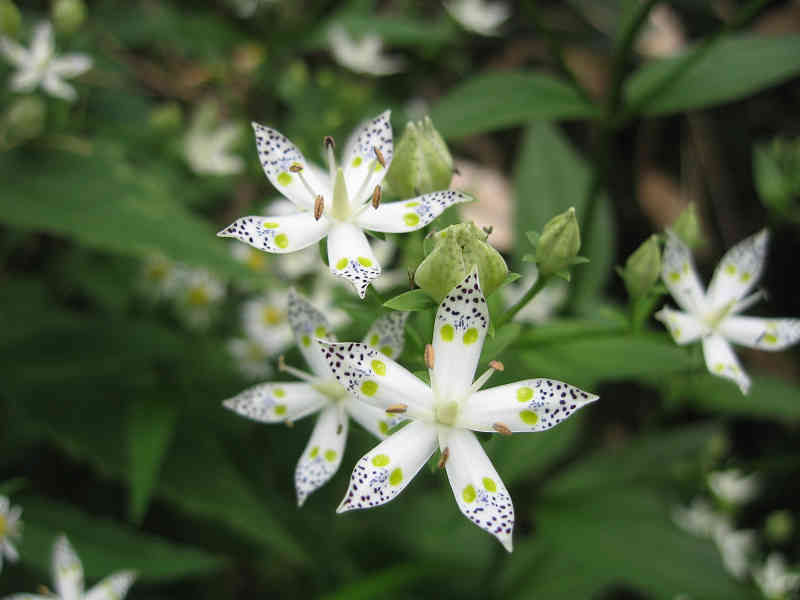 東方面の展望を眺めていると、木の間越しに雲が発生しているのが少々気になる。周囲に木の実や珍しい花などを探しながら高度を上げて行くと、林道分岐からは40分で林道終点に到着した。
