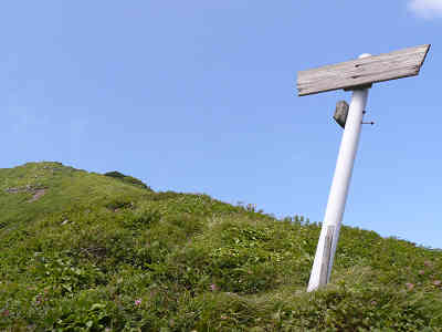 2007年8月5日 ユートピア分岐〜象ヶ鼻〜振子沢分岐標識 南光河原駐車場 →0:10→ 大山寺 →0:10→ 大神山神社 →0:05→ 下宝珠越分岐 →0:10→ 舗装道(下宝珠登山口標識) →0:25→ 下宝珠越 →0:30→ 中宝珠越→0:40→ 上宝珠越 →0:10→ 勝間ケルン →0:10→ ユートピア分岐 →0:20→ 三鈷峰 →0:15→ ユートピア分岐→ 0:10→ 象ヶ鼻 →0:10→ 振子沢分岐標識 →0:25→ 振子山 →0:25→ 親指ピーク →0:30→ 野田ヶ山 →0:35→ 大休峠 →0:55→ 矢筈ヶ山 →0:45→ 大休峠 →1:40→ 川床 →1:10→ 南光河原駐車場 全歩行時間 9時間50分 前回までの行程 南光河原駐車場を出発、大山寺・大神山神社に参拝し、下宝珠越・中宝珠越・上宝珠越を経由してユートピアと三鈷峰の分岐に到着、まずは三鈷峰を往復した。 しばらく三鈷峰手前のピークから周囲の展望を眺めた後、ユートピアに向かって下りて行き、途中では沢山の花々を観賞する。ユートピアの分岐から避難小屋方面に向かいながら沢山の写真を撮る。風が強いのでとても涼しいのだが、落ち着いた写真を撮るには少し環境が悪いようだ。