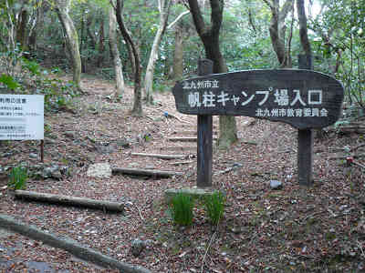 平坦な公園の先にはアンテナを頂いた権現山がそびえているが、先に皿倉山の山頂を目指すことにする。舗装道を北東方向へ進むと、右側に「新日本三大夜景 皿倉山八合目」の案内が立ち、九州自然歩道の案内に従い進む。手すりの整備された横木の階段を登るとすぐに舗装道を横切り、階段を登れば皿倉山ビジターセンターへ着く。