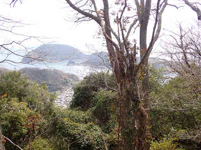 周囲が明るくなれば、眼下に沖家室島を見晴らす展望地へ着いた。ただし、3月初旬の落葉の時期なのでしっかり見えるが、青葉が目立ち始めると樹幹越しになるかも知れない。周囲にアベマキの木を眺めながら再び急な傾斜を下る。この坂もロープがしっかり続いている。