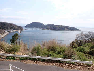 地蔵堂に参拝し、南へ続く道に入る。みかん園の中につけられた道を辿るが、坂には補助のロープが渡され、足下はしっかり整備されているのでとても歩きやすい。南に沖家室大橋や沖家室島、掛津島、平郡島を眺める展望地があり、しばらく眺める。