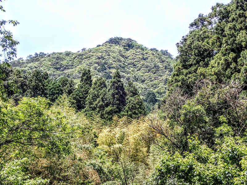 そのまま北へ進むが、竹等が繁り一部歩き難くなっていた。谷沿いを少しずつ高度を上げると、直進方向は歩き難くなってきたので右へ進路をとれば、朽ちた目印を見つけることができた。堰堤付近までは目印のテープが残っていたが、堰堤先からはっきりした目印は残っていない。