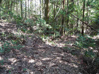 正面左手には猿王岳中嶽(西ヶ迫山)が見えているのだが、この段階では中嶽の位置は当然わかっていない。少し荒れた道を登り始める頃から踏み跡が怪しくなり、間もなく右手に迂回路を見つける。そのまま踏み跡を辿って行くと右手に明確なる道が現れる。