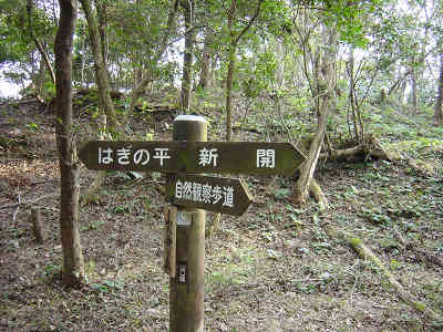 荒れた道はすぐに自然観察歩道と合流し整備された道となった。横木も渡してあり歩きやすくなっている。休憩所も整備してあり至れり尽くせりの登山道の印象を受けた。登山口から15分程度で萩の平に着いた。